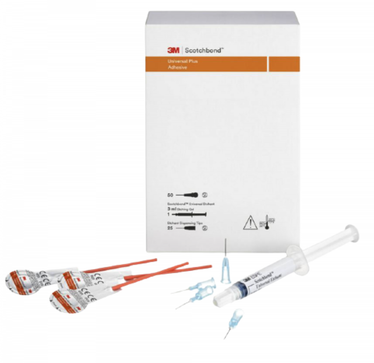 3M™ Scotchbond™ Universal Plus Adhesive è il primo adesivo universale radiopaco, che riduce al minimo il rischio di diagnosi errata ai raggi X e di sovratrattamento invasivo. Garantisce un'adesione gold standard a tutti i substrati dentali, inclusa la vetroceramica, senza la necessità di un primer, un silano o un attivatore separato. E' in linea con i principi dell'odontoiatria minimamente invasiva in quanto aderisce e sigilla la dentina colpita dalla carie. La formulazione è priva di derivati BPA come il BisGMA. Virtualmente nessuna sensibilità post-operatoria. Insieme a 3M™ RelyX™ Universal Cement, cemento composito, costituisce un sistema pienamente allineato che offre eccellente resistenza dell'adesione per virtualmente tutte le indicazioni dei cementi compositi duali.