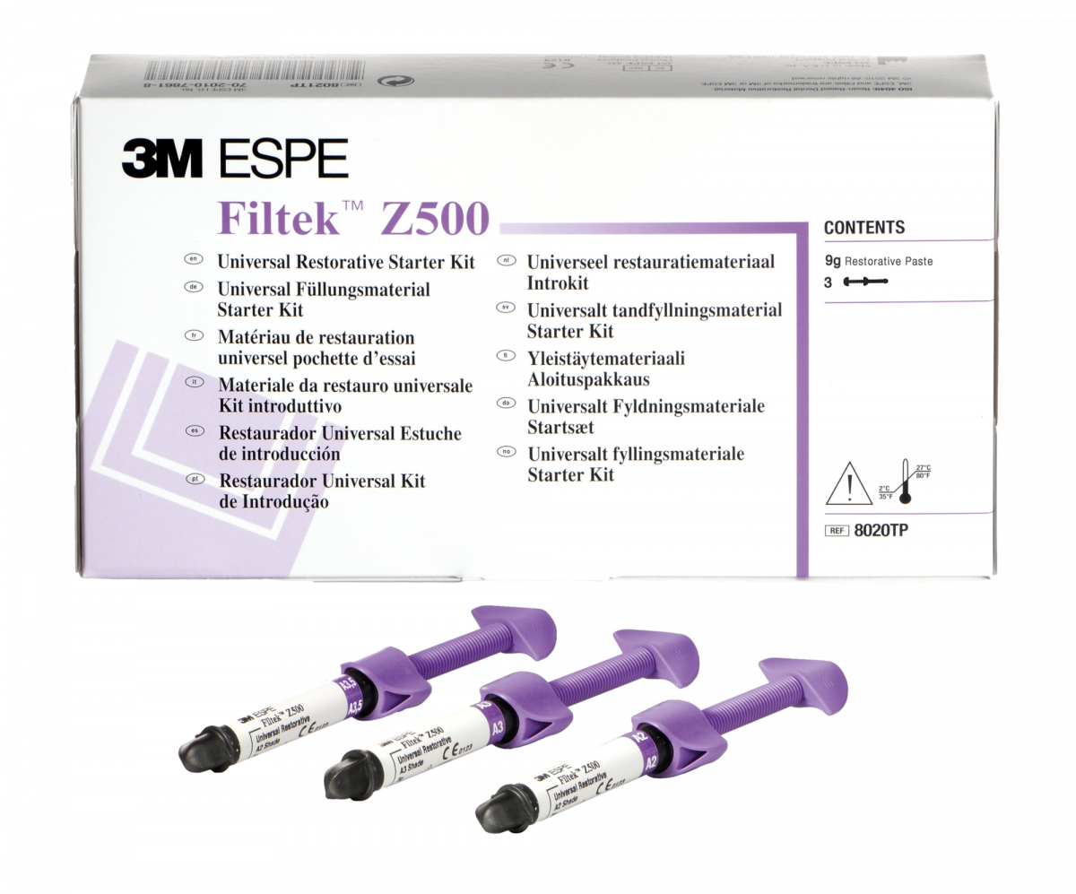 Filtek™ Z500, Composito Universale, è l'ultima aggiunta nella gamma Z (Z100™ MP, Filtek™ Z250), con appiccicosità ridotta per una lavorabilità ottimale.