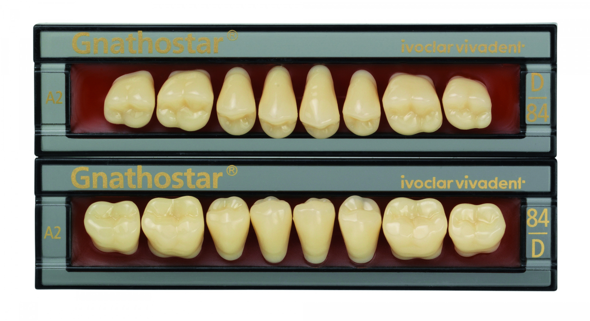 GNATHOSTAR Denti posteriori (5 forme superiori e 5 forme inferiori) ideale completamento alla linea denti Ivostar. GNATHOSTAR CHROMASCOP - Stecca da 8 denti