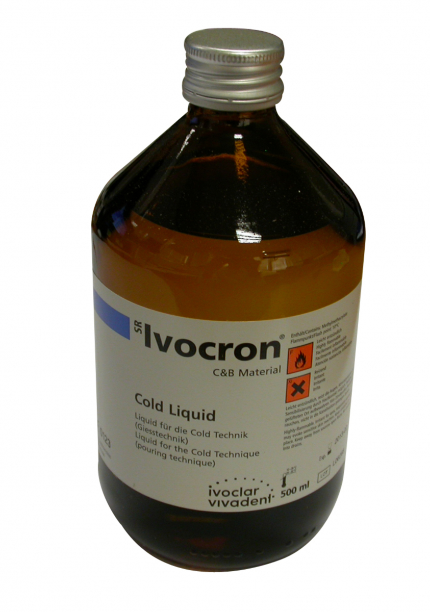 SR IVOCRON Resina universale per rivestimento estetico in PMMA, per la realizzazione di ponti, corone e provvisori. SR IVOCRON LIQUIDO COLD - Flacone da 500 ml