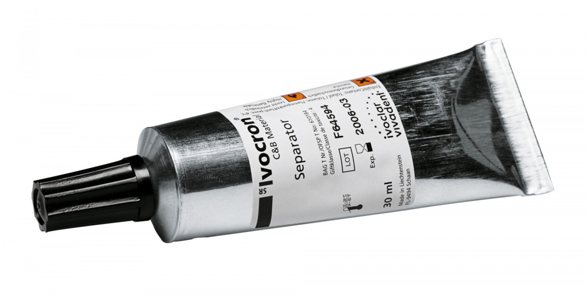 SR IVOCRON Resina universale per rivestimento estetico in PMMA, per la realizzazione di ponti, corone e provvisori. SR IVOCRON SEPARATOR - Tubo da 30 ml