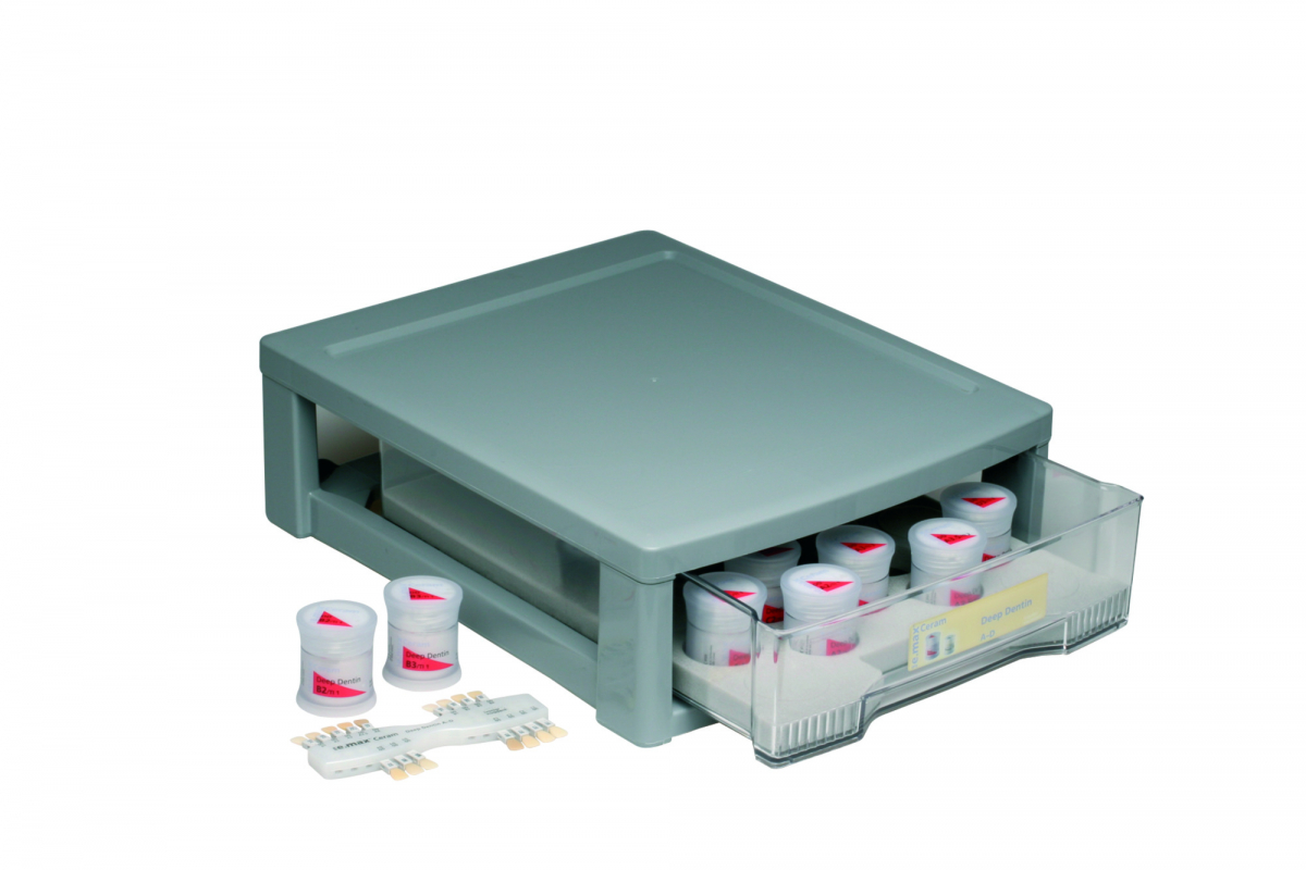 IPS E.MAX CERAM Ceramica di stratificazione a base di nano-fluoro-apatite indicata per il rivestimento estetico e la caratterizzazione di tutte le componenti e.max. IPS e.max CERAM DEEP DENTIN KIT A-D - Contenuto: 8 Deep Dentin A-D da 20 gr (colori A1,A2,A3,A3.5,B2,B3,C2,D3) + 1 campionario masse Deep Dentin A-D