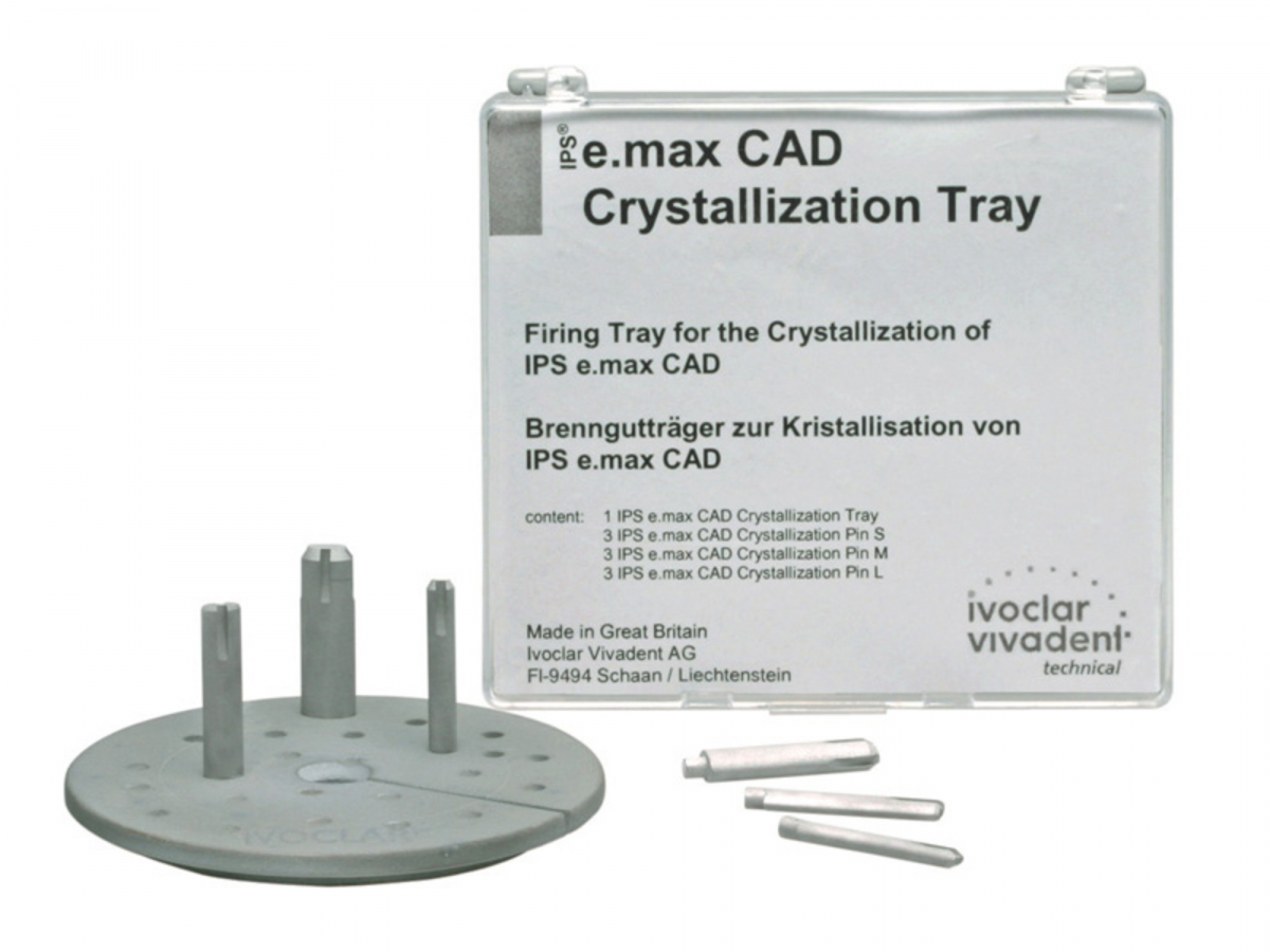 IPS e.max CAD Crystallization Tray Portaoggetti in nitrito di silicio per la cristallizzazione di restauri IPS e.max CAD. Compresi nella confezione i pins che si utilizzano durante la cristallizzazione. Confezione: 1 portaoggetti in nitrito di silicio + 9 pins (3 small, 3 medium, 3 large)