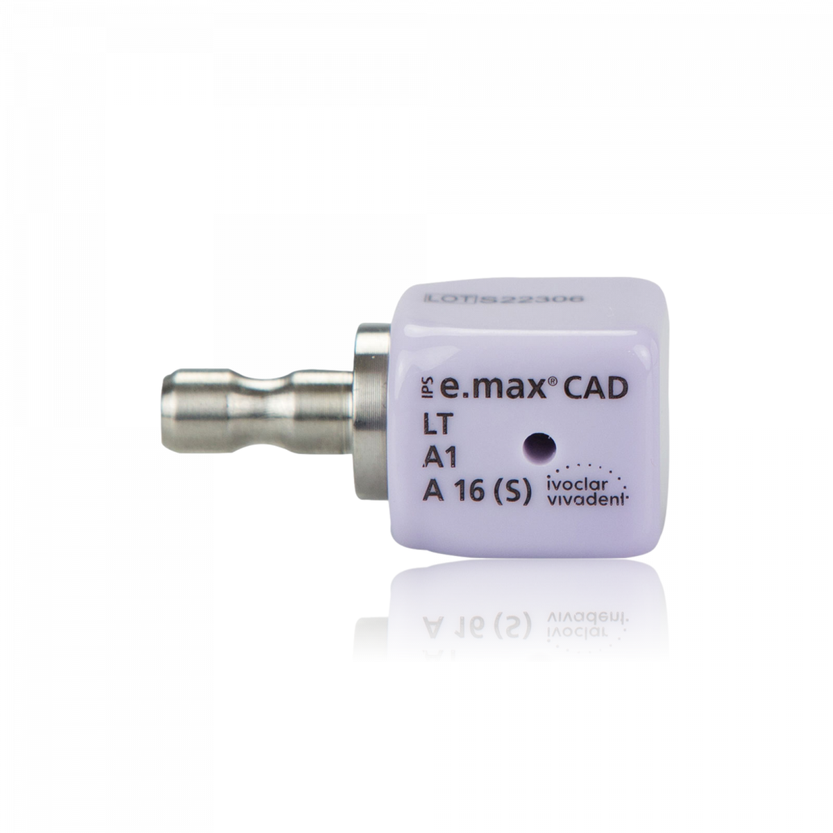 IPS e.max CAD Blocchetti in vetroceramica a base di disilicato di litio, che offrono un'ampia varietà di soluzioni, a copertura dell'intera gamma di indicazioni, per la massima flessibilità nella lavorazione digitale. ABUTMENT SOLUTIONS: indicati per trattamenti ibridi individuali per impianti, per trattamenti di corone singole nei settori anteriori e lateroposteriori. I blocchetti presentano un'interfaccia predisposta, diametro S e L (per esempio per i Ti- Base Sirona): nelle misura A16 sono ideali per abutment ibride altamente efficienti. Disponibili nella gradazione di traslucenza LT (Low Traslucency) nei 9 colori A-D più usati ed in 1 colore Bleach. Confezione da 5 blocchetti