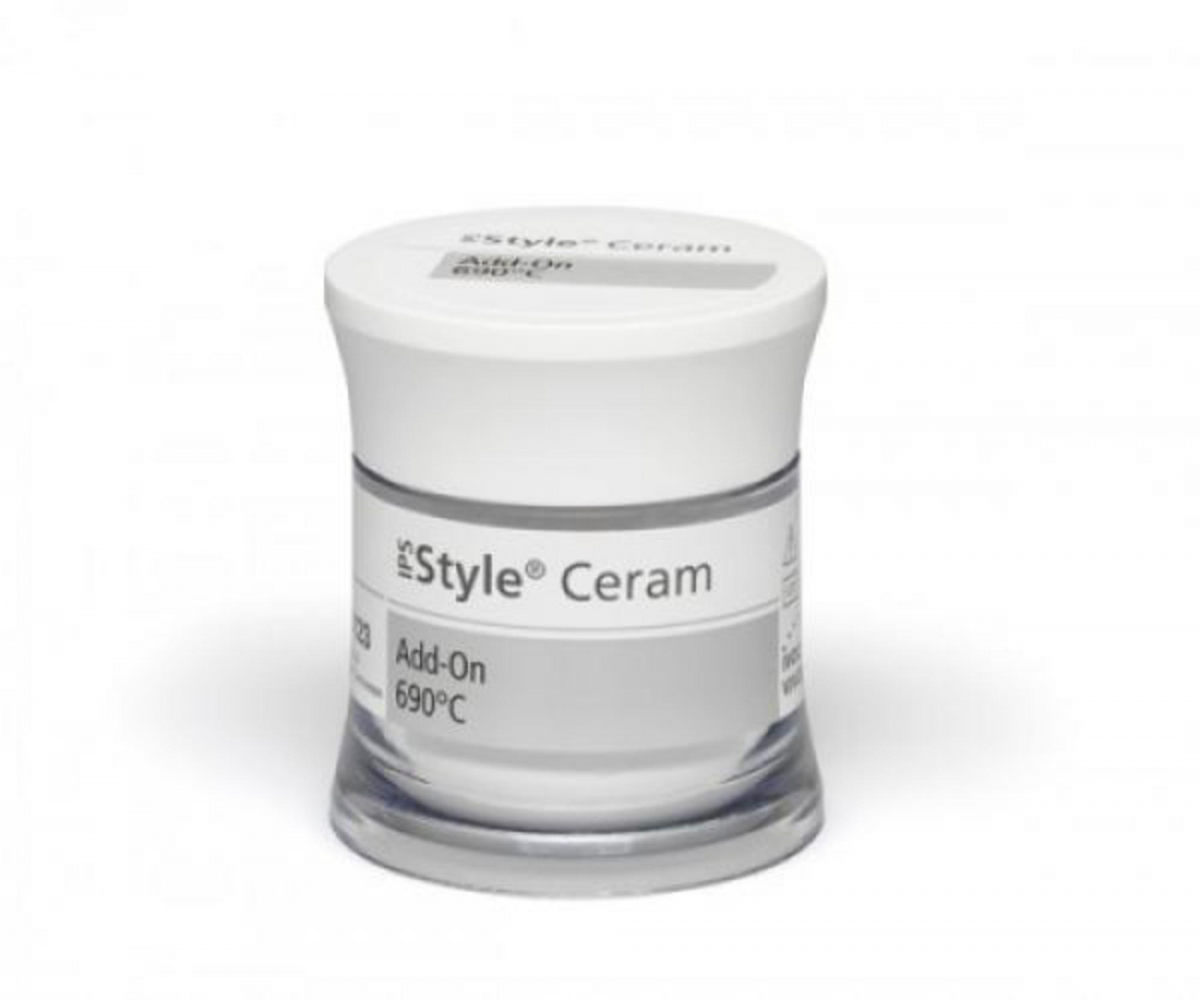 Le masse IPS Style Ceram Add-On servono ad effettuare correzioni p.es. di punti di contatto, basi del pontic oppure adattamenti della spalla. Sono disponibili cinque masse di correzione. IPS Style Ceram Add-On Margin,Dentin, Incisal, Bleach si utilizzano insieme alla cottura di glasura ed Add-On 690°C dopo la cottura di glasura.