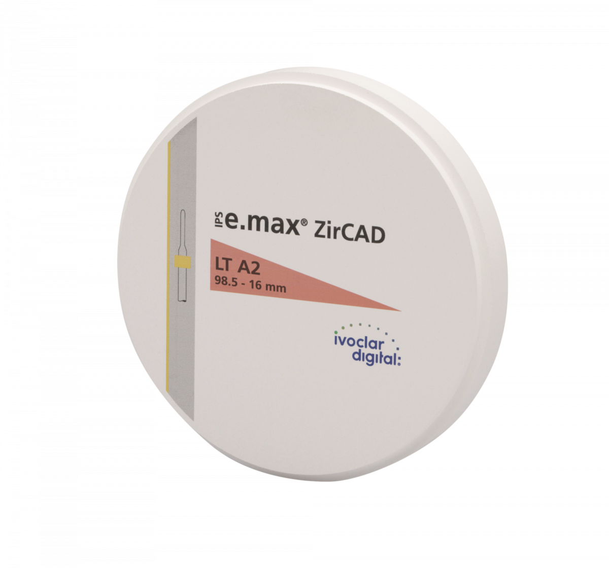 IPS e.max ZirCAD LT sono dischi monocromatici, altamente resistenti (1200Mpa), disponibili nella variante in bianco oppure nella variante precolorata dei gruppi di colore A-D.