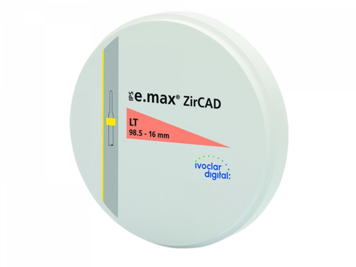 IPS e.max ZirCAD LT sono dischi monocromatici, altamente resistenti (1200Mpa), disponibili nella variante in bianco oppure nella variante precolorata dei gruppi di colore A-D.