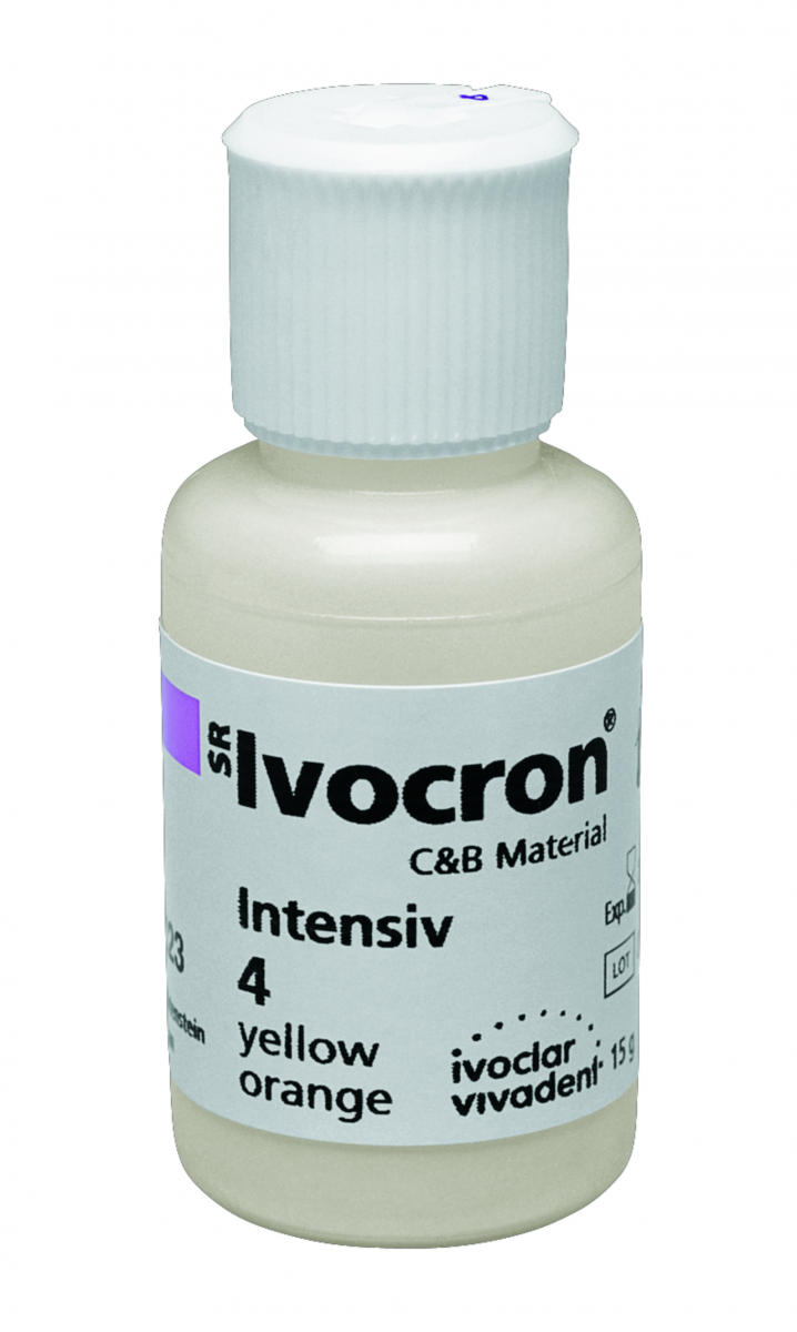 SR IVOCRON Resina universale per rivestimento estetico in PMMA, per la realizzazione di ponti, corone e provvisori. SR IVOCRON INTENSIV - Confezione da 15 gr
