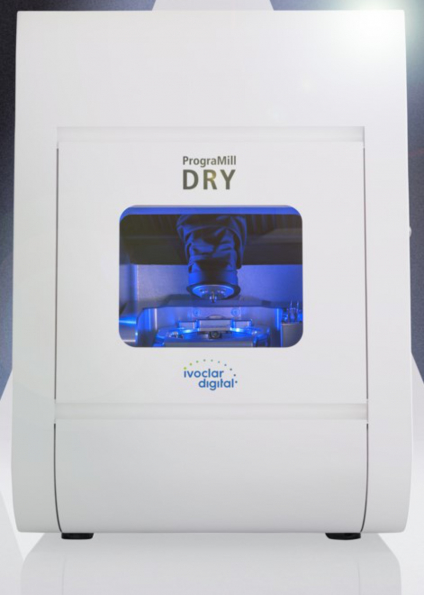 PrograMill DRY è un fresatore CAD CAM a secco con 5 assi, si colloca perfettamente in tutti i tipi di laboratorio grazie al suo Desing che occupa poco spazio.