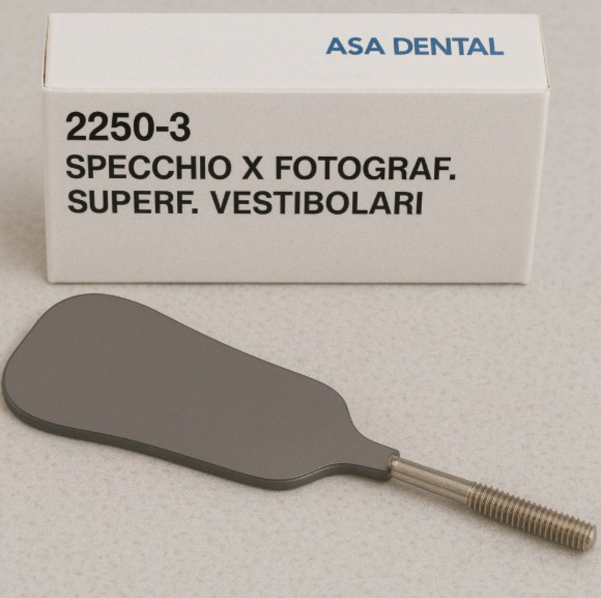 Specchio per fotografia odontoiatrica con superficie vestibolare.