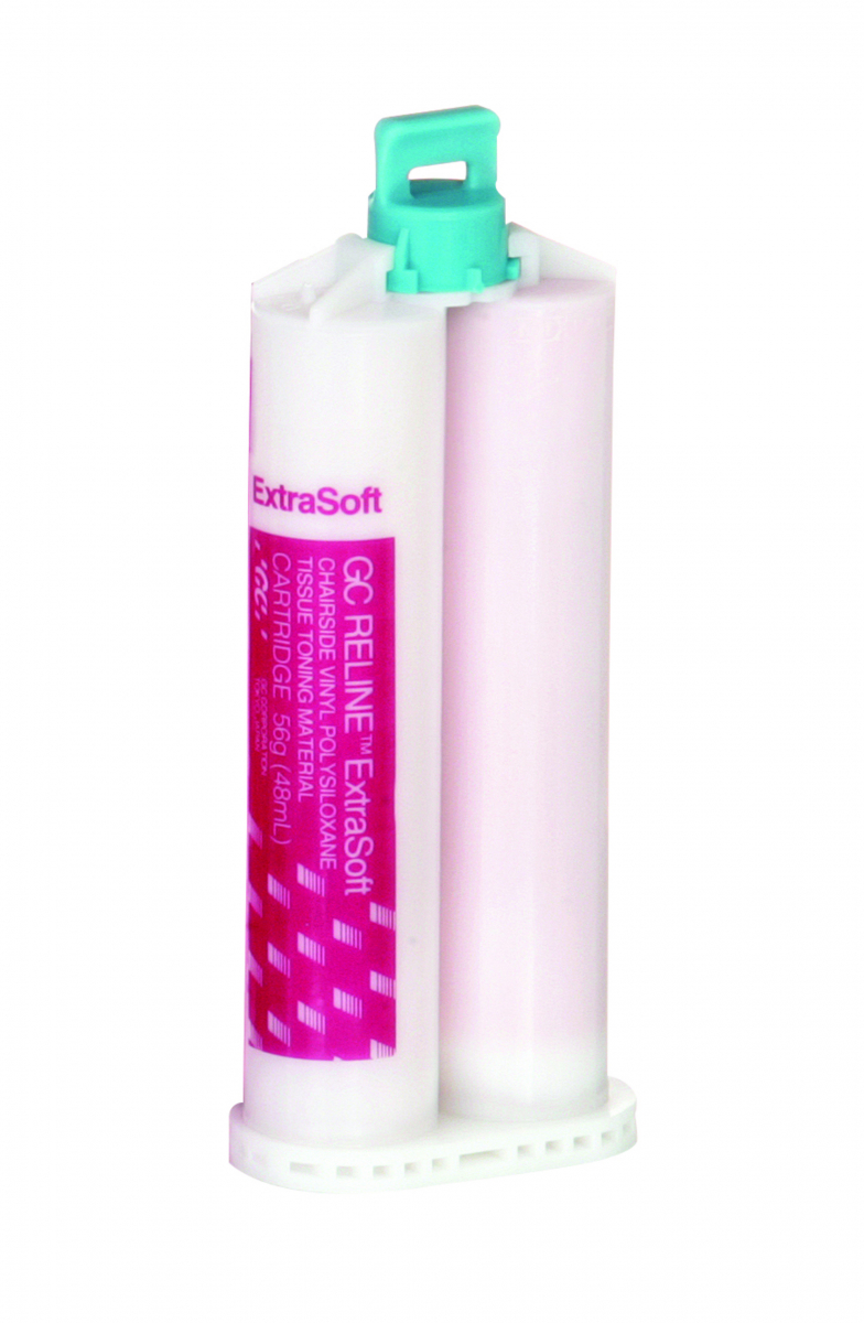 RELINE EXTRA SOFT Materiale siliconico per ribasature soffici, ideale come condizionatore tissutale, prima dell'applicazione di protesi. Confezionato in pratiche cartucce che garantiscono un'applicazione rapida e diretta. Kit Intro: 1 cartuccia da 48 ml + Primer R da 12 gr + modificatore A&B da 10 gr cad. + 6 puntali + accessori