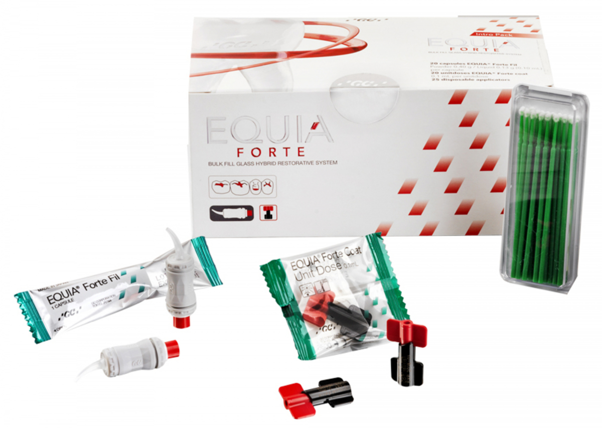 EQUIA FORTE Materiale vetro-ibrido per otturazioni bulk superiori e più resistenti, indicato per restauri di classe I e II. Equia Forte è un materiale per restauri estetico a indurimento rapido, basato su un'avanzatissima tecnologia dei vetro-ionomeri con una maggiore resistenza alla frattura, una migliore resistenza all'usura e un rilascio di fluoro superiore. Grazie alla tecnologia di adesione universale integrata e all'eccellente bagnabilità del prodotto, non serve nessuna procedura di condizionamento o di bonding. Equia Forte è estremamente tollerante all'umidità in fase di applicazione, richiede anzi di essere applicato in campo leggermente umido e aderisce ugualmente bene a tutte le superfici cavitarie indipendentemente dall'età del paziente e dalle condizioni della dentina. Poichè Equia Forte Coat funge da rivestimento finale del restauro, si risparmia tempo nella lucidatura e si possono velocemente ottenere risultati migliori in termini di traslucenza ed estetica. Intro Pack: 20 capsule di Equia Forte
