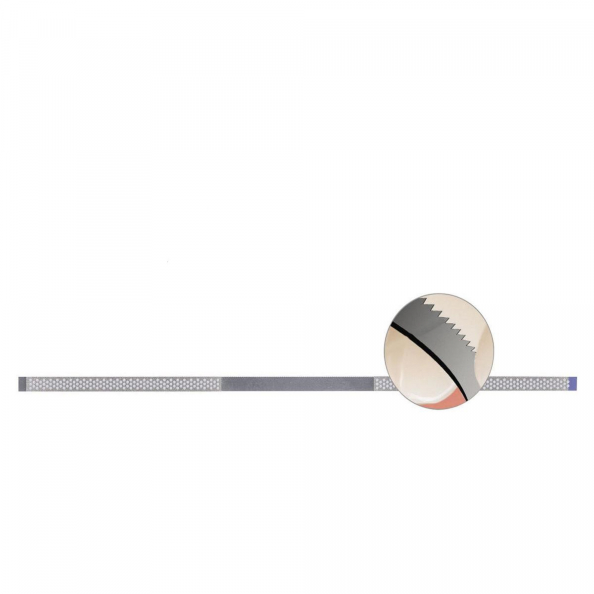 Strisce sottili in acciaio inox, flessibili e resistenti, con un solo lato abrasivo e zona centrale non diamantata per facilitare l'inserimento interprossimale. Indicate per la sgrossatura e la rifinitura di superfici prossimali di otturazioni e per allargare i punti di contatto. Autoclavabili. Lunghezza cm. 14,7. Confezione: 10 pz.