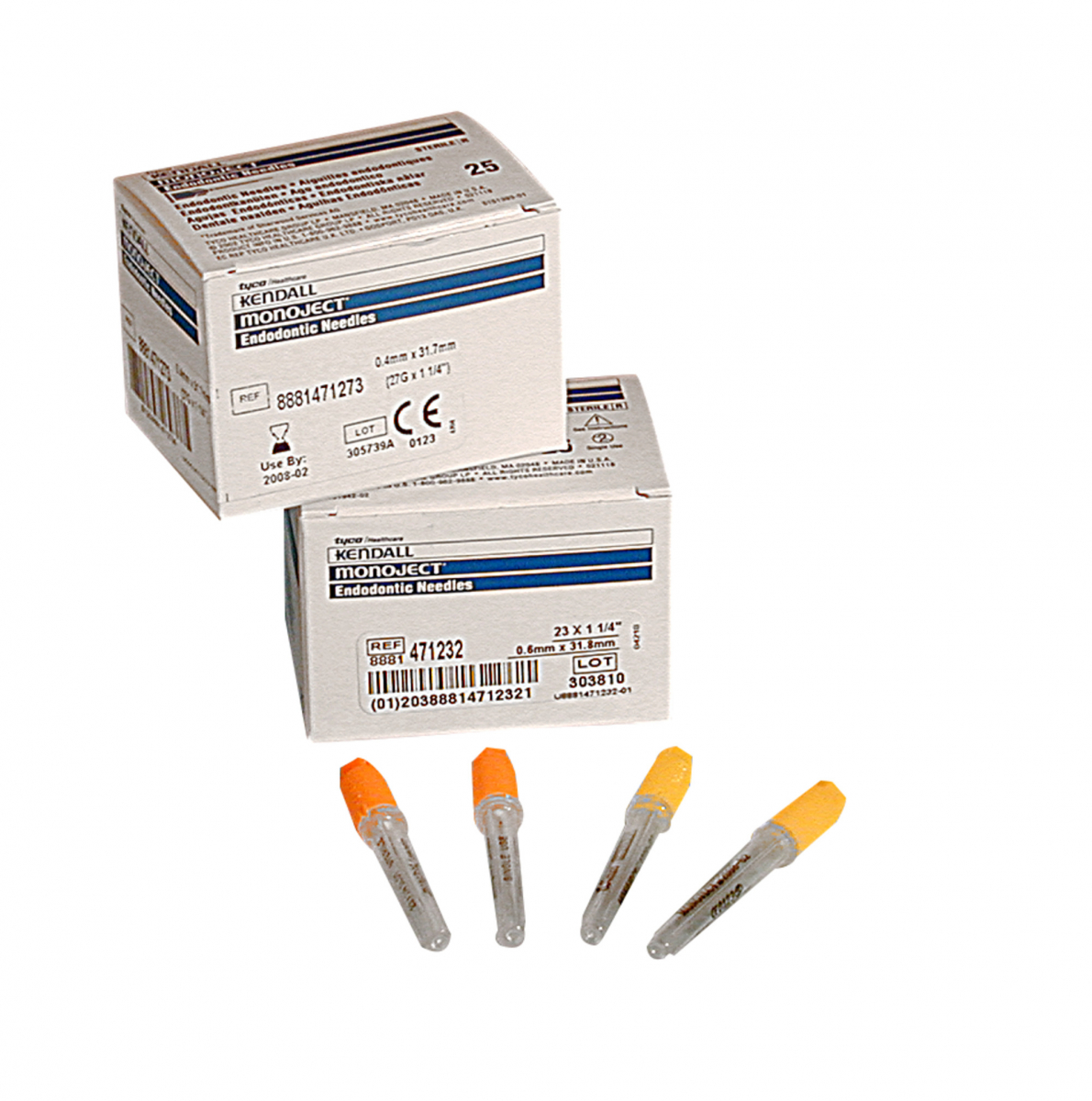 Aghi per endodonzia con attacco in plastica filettati per lavaggi canalari. Scatola da 25 aghi. Aghi 23G (Ø 0,6x30 mm) - Colore Arancione