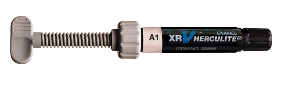 HERCULITE XRV Composito microibrido, fotopolimerizzabile, radiopaco, per restauri diretti ed indiretti di denti anteriori e posteriori. Versione in siringhe. Confezione: 1 siringa dentina da 5 gr
