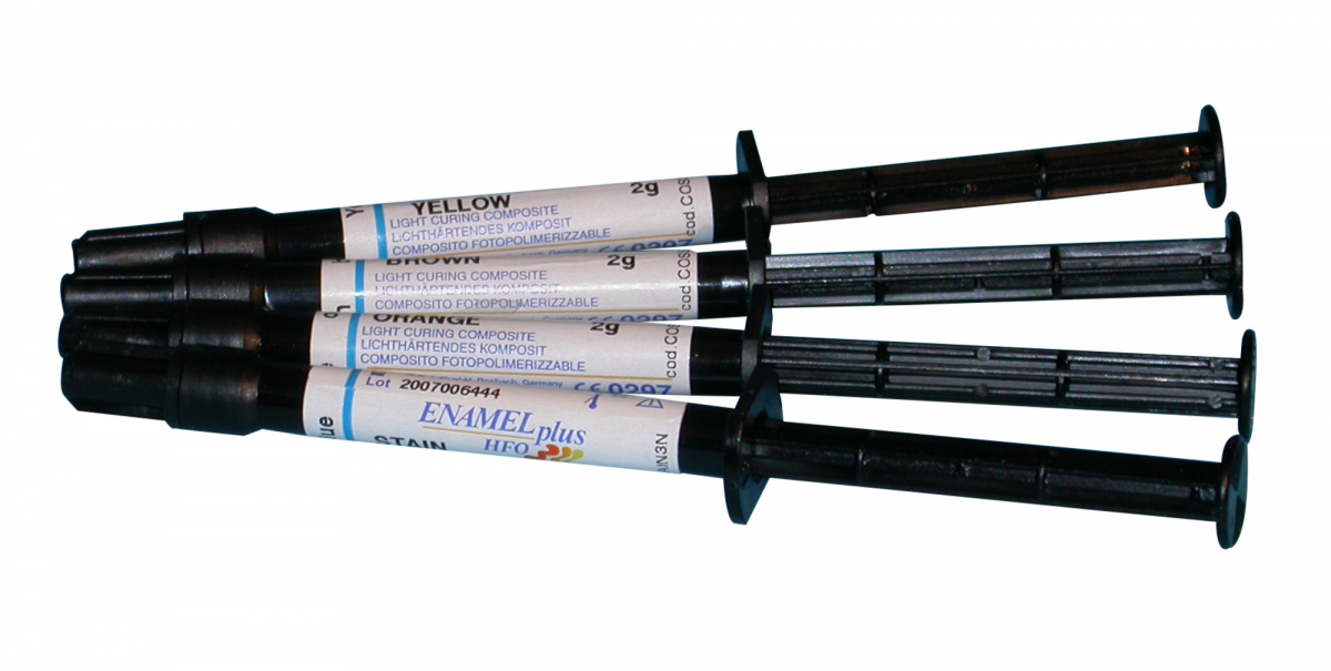 ENAMEL PLUS HFO SUPER COLORI "FLOW" - Mi cerium Supercolori fluorescenti in composito, u nici per eseguire caratterizzazioni sia in studio che in laboratorio: grazie all a loro alta fluorescenza, si integrano p erfettamente nel dente naturale. Possono essere utilizzati da soli, oppure mesco lati con il composito senza alterarne le caratteristiche di fluorescenza. Ricambio: 1 siringa da 2 gr - COLORE BLU