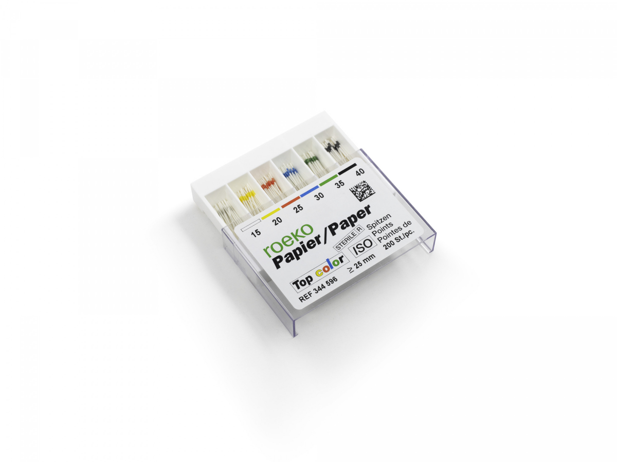 CONI CARTA TOP COLOR Punte di carta standardizzate ISO, sterili, per l'asciugatura dei canali radicolari. Lunghezza 28 mm. Confezione da 120 pezzi