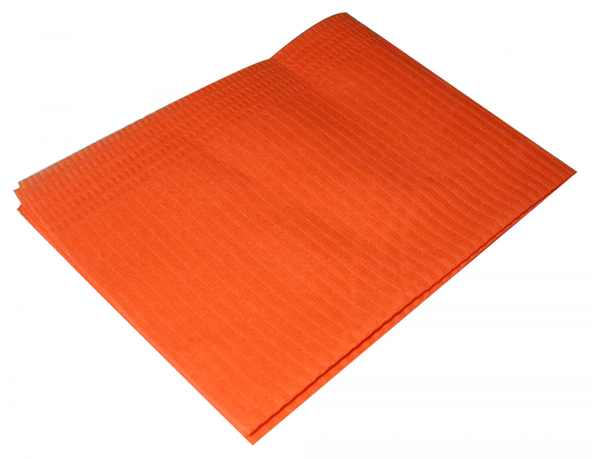 TOVAGLIOLI PLASTIFICATI Tovaglioli a 3 strati, 2 veli di cellulosa goffrata ed 1 velo di polietilene. Formato cm 33x48. Confezione: 500 pezzi - Colore Arancione.