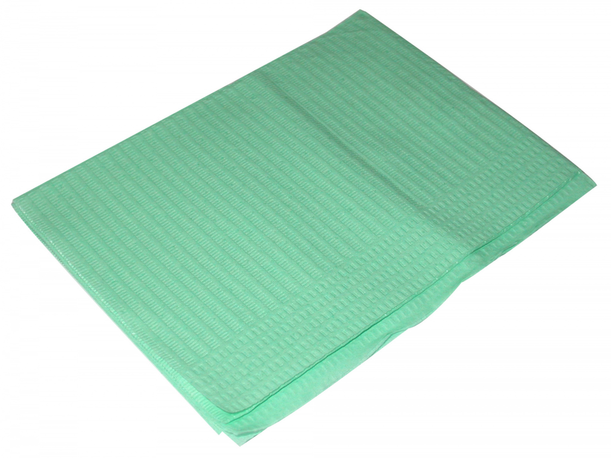 TOVAGLIOLI PLASTIFICATI Tovaglioli a 3 strati, 2 veli di cellulosa goffrata ed 1 velo di polietilene. Formato cm 33x48. Confezione: 500 pezzi - Colore Verde.
