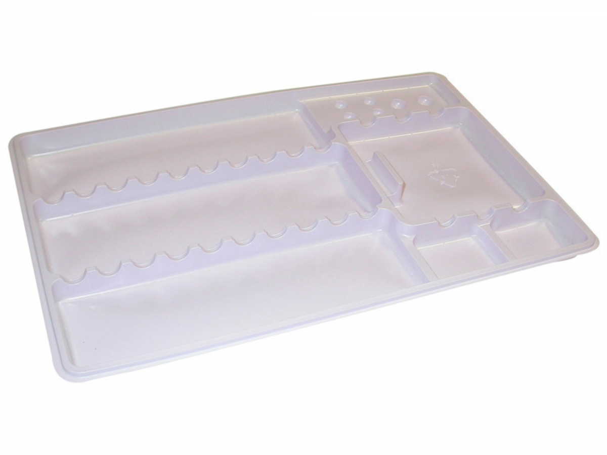 TRAY MONOUSO Vassoi monouso per vaschette in alluminio, mini-vassoi e vassoi. In plastica atossica, resistono agli acidi ed ai liquidi per cementi. Biodegradabili, sono disinfettabili a freddo. TRAY LISCI: misura 28,6x1,7x18,8 cm (LxHxP). Confezione: 400 pezzi - Colore Lilla