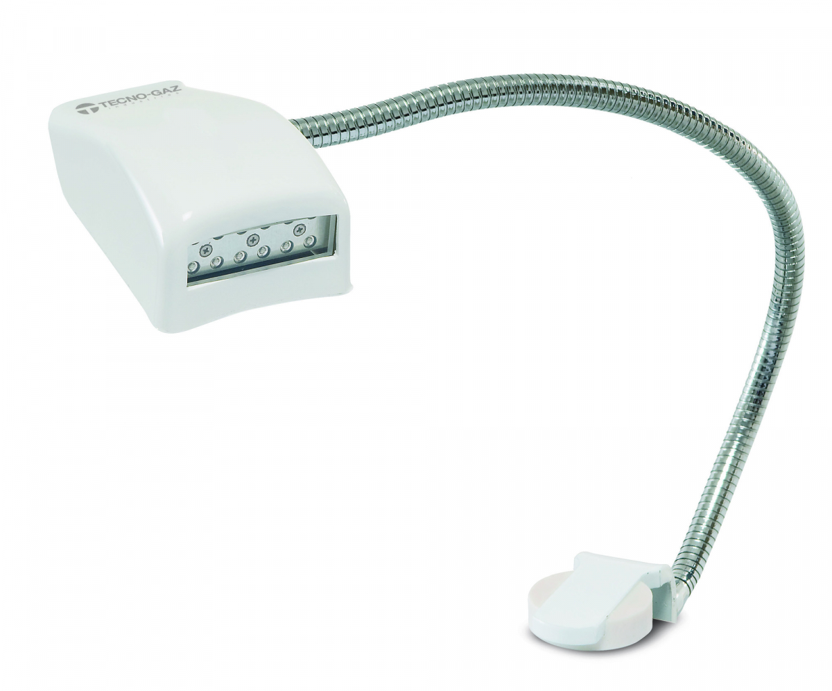 CLIP Lampada sbiancante portatile da fissare al riunito estremamente pratica e facile da utilizzare, avente la stessa potenza ed efficacia delle lampade a stativo. Caratteristiche principali: corpo irradiante( nel quale sono posizionati i led) i quali vengono costantemente controllati e raffreddati, al fine di evitare trasmissioni di caldo sulla parte trattata. Lo stesso è montato su comodo braccio flessibile da fissare (tramite morsetto meccanico) al perno del poggiatesta oppure su altro supporto adeguato, interruttore generale collocato sotto alla testata(per accensione/spegnimento dell'apparecchiatura) e per attivazione e blocco del trattamento,l'attivazione genera uno step temporizzato (durata di 10 minuti) con spegnimento automatico, alimentatore con controllo elettronico (predisposto per essere fissato a parete o appoggiato a pavimento) Lunghezza d'onda: 495 nm. Intensità luminosa massima: 30000 mW. Peso: 5 Kg.