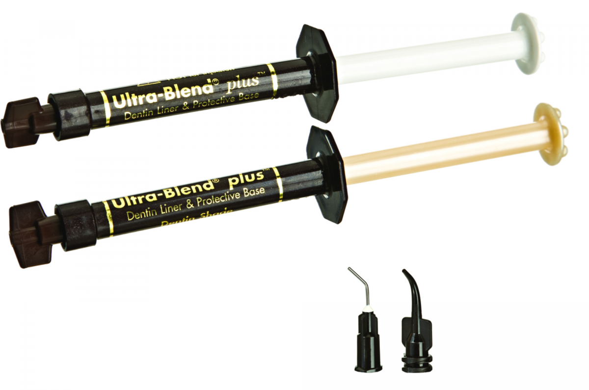 ULTRABLEND PLUS Liner fotopolimerizzabile, radiopaco, per incappucciamento pulpare. Contiene idrossido di calcio in una base di dimetacrilato diuretano e viene utilizzato come liner cavitario sottile prima dell'applicazione di composito o amalgama. Kit: 2 siringhe da 1,2 ml cad. (colore dentina) + 2 siringhe da 1,2 ml cad. (colore bianco opaco) + 20 punte Black Micro + 20 punte Black Mini