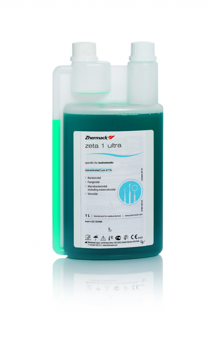 Disinfettante e detergente concentrato, a base di ammonio cloruro, senza aldeidi, a spettro d'azione completo, per strumentario chirurgico e rotante. Svolge un'efficace azione battericida, fungicida, micobattericida, tubercolicida e virucida (inclusi HIV, HBV, HCV, Poliovirus, Adenovirus). Diluizione: 1%. Flacone da 1 Lt