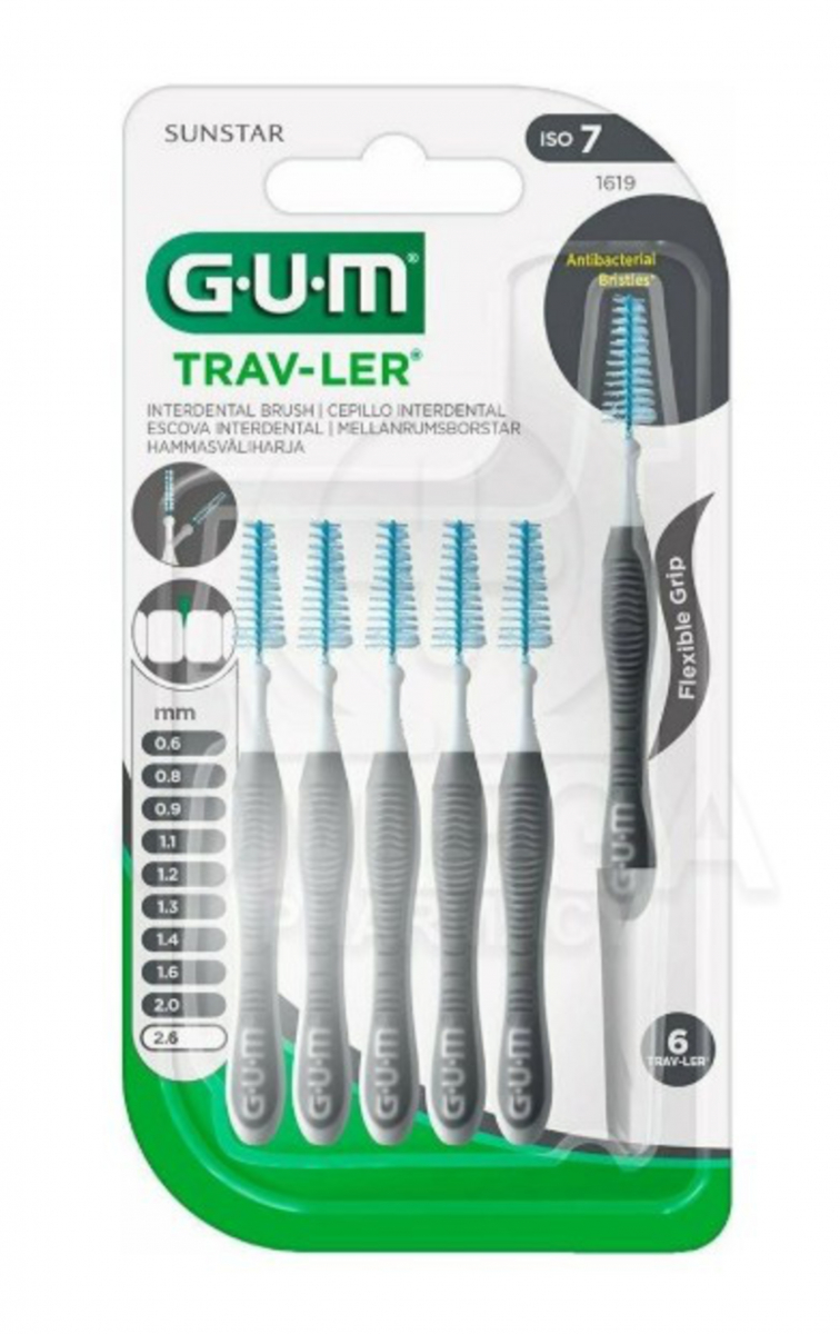 Scovolini interdentali GUM Trav-Ler modello 1619, forma conica, diametro ca. 2,5 mm, confezionati in confezione da 36 pezzi. Scovolini studiati per rimuovere placca e residui alimentari negli spazi interdentali larghi, ideali anche per chi porta apparecchio ortodontico o ha impianti.