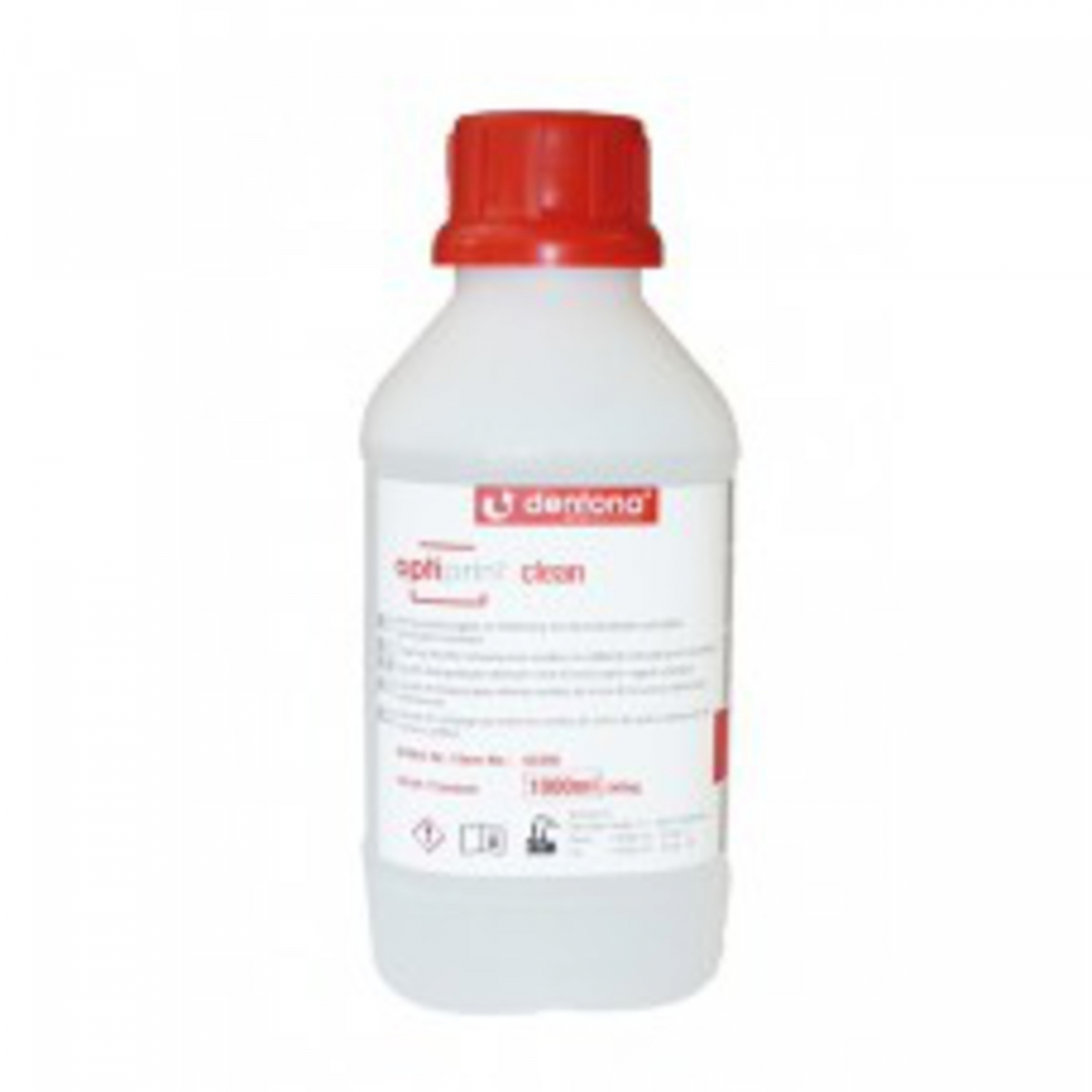 Liquido di detersione. Da utilizzare a processo di stampa terminato per eliminare i residui di resina. Versare il liquido Clean in un becker ed inserirlo nell’apparecchio a ultrasuoni per tre minuti, quindi ripetere il procedimento per altri tre minuti, dopo aver cambiato il liquido. Risciacquare sotto acqua corrente evitando l’uso di spazzolini che potrebbero graffiare le superfici.