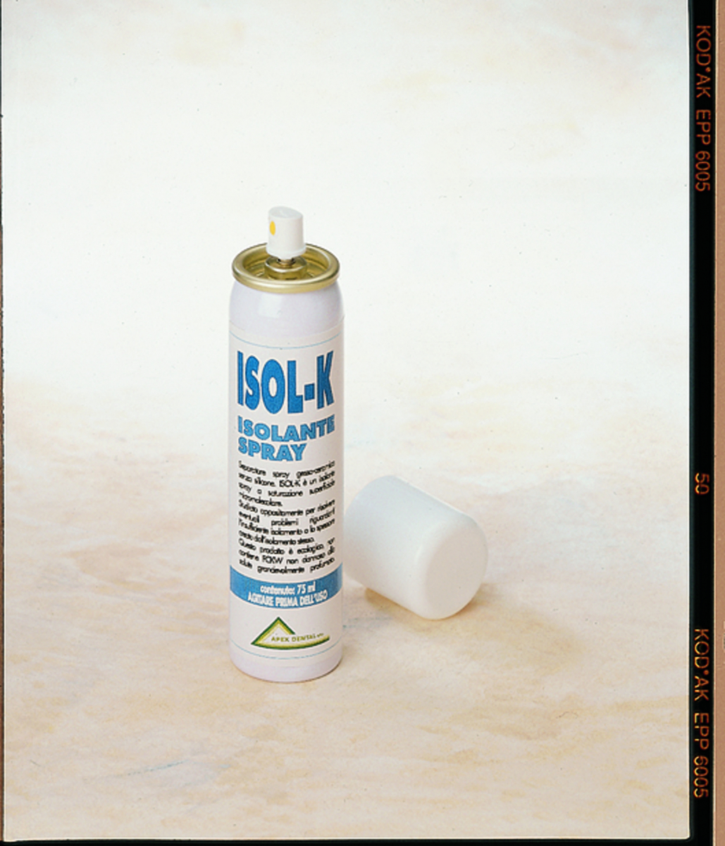 Isolante spray per gesso – ceramica privo di silicone. A saturazionesuperficile micromolecolare, isol-K isola perfettamente senza creare spesori. Ideale per chiusure marginali.