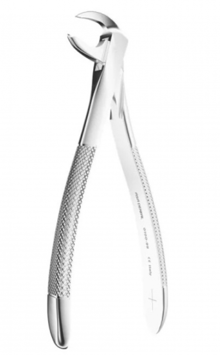 La Pinza estrazione 0100-99, figura 99, è uno strumento chirurgico in acciaio inossidabile, pensato per le estrazioni dentali in zone posteriori (molari inferiori). La conformazione della punta (Fig. 99) è studiata per adattarsi ai contorni delle radici e offrire presa stabile anche in condizioni complesse. L’impugnatura zigrinata garantisce una presa sicura durante l’uso. Lo strumento è riutilizzabile e sterilizzabile in autoclave, riflettendo il livello qualitativo previsto per gli strumenti ASA Dental.