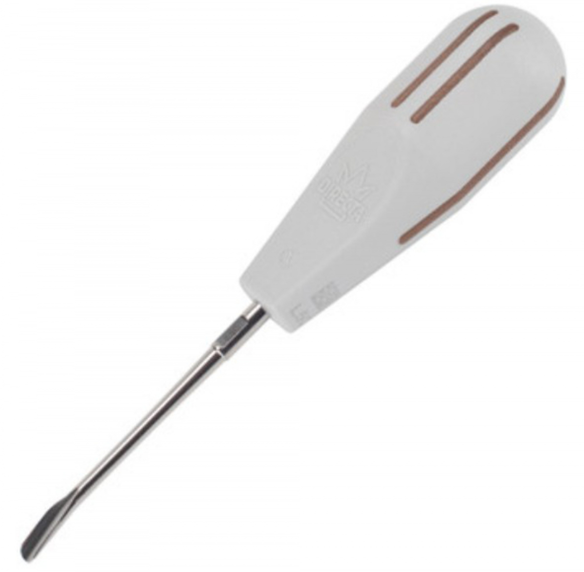 La 0280-5C è una leva tipo Luxator curvata, con punta curva da 5 mm, progettata per l’estrazione atraumatica e il disinserimento controllato di radici o monconi dentali. Realizzata in acciaio inossidabile con elementi in policarbonato per il manico, è riutilizzabile e sterilizzabile (con reprocessing fino a 130 °C).