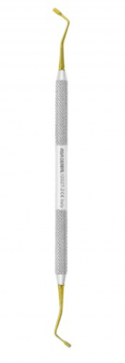 Strumento odontoiatrico in acciaio inox rivestito in titanio (nitruro di titanio), progettato per la compattazione e modellazione dell’amalgama nelle cavità. La configurazione Fig. 2 prevede doppia estremità funzionale, che garantisce versatilità nelle manovre cliniche. Il rivestimento in titanio assicura maggiore resistenza all’usura, scorrevolezza e durata nel tempo, riducendo l’adesione del materiale alla superficie. Riutilizzabile e sterilizzabile, è uno strumento essenziale nelle procedure restaurative.