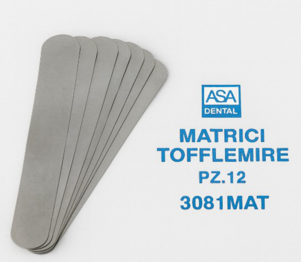 Realizzate in acciaio inox sottile e resistente, sono utilizzate per garantire la corretta forma e contenimento del materiale da restauro nelle otturazioni di II classe. Offrono stabilità, adattabilità ai denti e semplicità di utilizzo con i porta-matrici Tofflemire. Sterilizzabili, durevoli e riutilizzabili, sono strumenti indispensabili nella pratica restaurativa quotidiana.