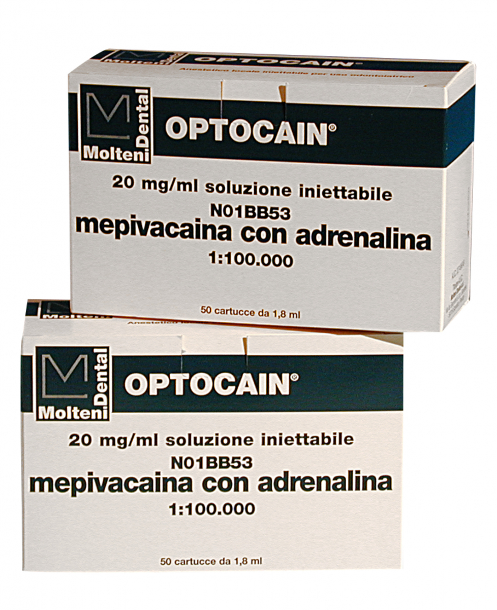 Anestetico locale, ad azione rapida (tempo di induzione max 5 min.) ed effetto prolungato: ideale per qualunque tipo di intervento odontostomatologico. A base di mepivacaina, l'Optocain non contiene parabenzoati e la possibilità di effetti collaterali e di reazioni allergiche è notevolmente ridotta. Optocain 20 mg/ml soluzione iniettabile con adrenalina 1:100.000 (A.I.C. nr. 027496049).