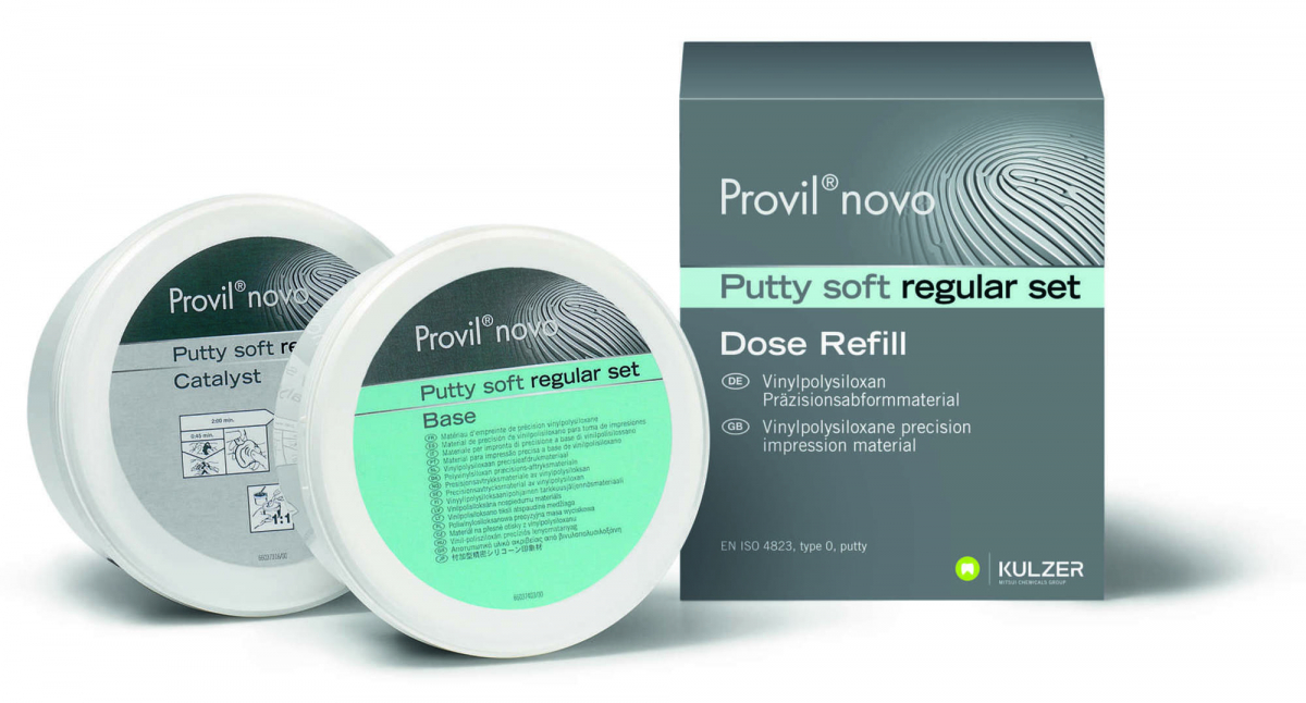 PROVIL NOVO Silicone di tipo A, idroattivo, adatto a tutte le tecniche di impronta. Confezione: 2 (base + catalizzatore) da 450 ml cad. - Putty Soft Regular Set