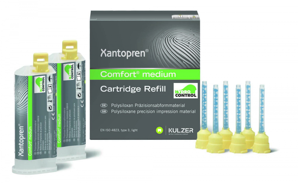 XANTOPREN CD COMFORT Silicone tipo C (2ª impronta) in pratiche cartucce. Confezione: 2 cartucce da 50 ml cad. - Versione Medium, viscosità media