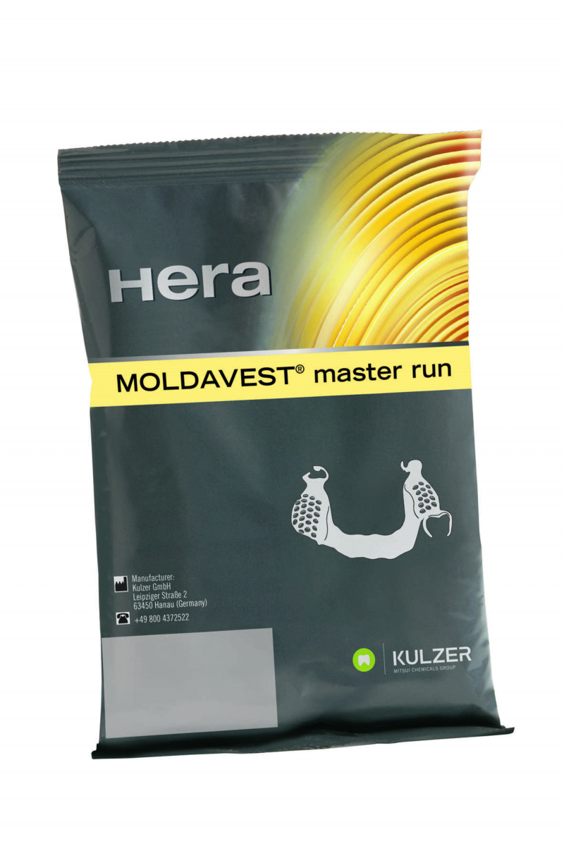 MOLDAVEST MASTER RUN Rivestimento di precisione fosfatico, privo di grafite, per la tecnica di protesi scheletrata in cobalto cromo (CoCr) e in metallo nobile. Adatto esclusivamente per la duplicazione con silicone; indicato per procedure di riscaldamento rapido. Confezione: 45 buste da 450 gr cad. (20,25 Kg)