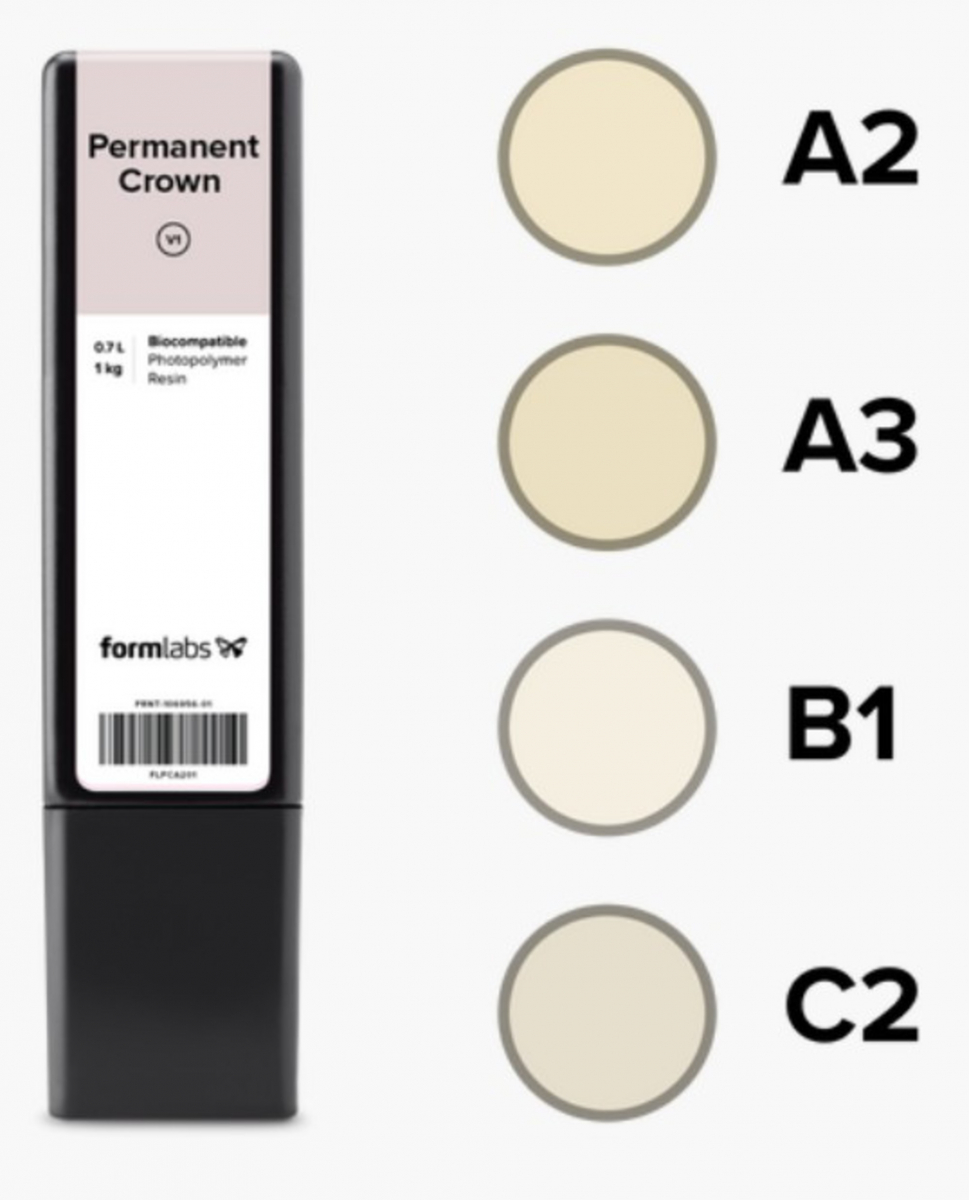 La resina per corone permanenti è una resina riempita di ceramica, dello stesso colore del dente, per la stampa 3D di corone singole permanenti, inlay, onlay e faccette. La resina per corone permanenti produce restauri ad alta resistenza e a lungo termine, con un adattamento accurato e preciso. Il basso assorbimento d'acqua e la finitura liscia garantiscono che i restauri realizzati in resina per corone permanenti abbiano una bassa tendenza a invecchiare, scolorire o accumulare placca.
