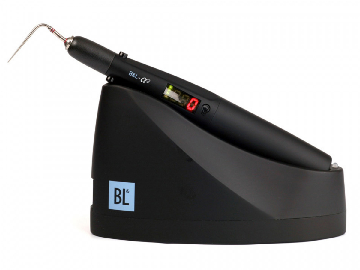 SUPERENDO ALPHA II Dispositivo cordless per la compattazione verticale a caldo: la condensazione e l'otturazione verticale, riducono il rischio di frattura della radice. Nessuna limitazione di impiego (cordless), compatto, leggero ed ergonomico, temperatura regolabile; veloce, in pochi secondi le punte raggiungono la temperatura desiderata. Autospegnimento (in caso di malfunzionamento si spegne automaticamente); autonomia 4 ore. Vasto assortimento di plugger (otturatori) in diverse misure ISO e conicità: punte compatibili con Touch'n Heat e System B.