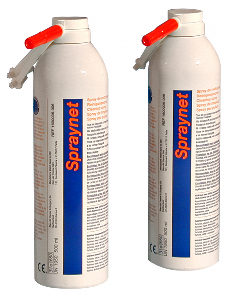 Detergente in spray, per la pulizia di contrangoli e manipoli diritti. Da utilizzarsi prima della lubrificazione e della sterilizzazione. Flacone da 500 ml