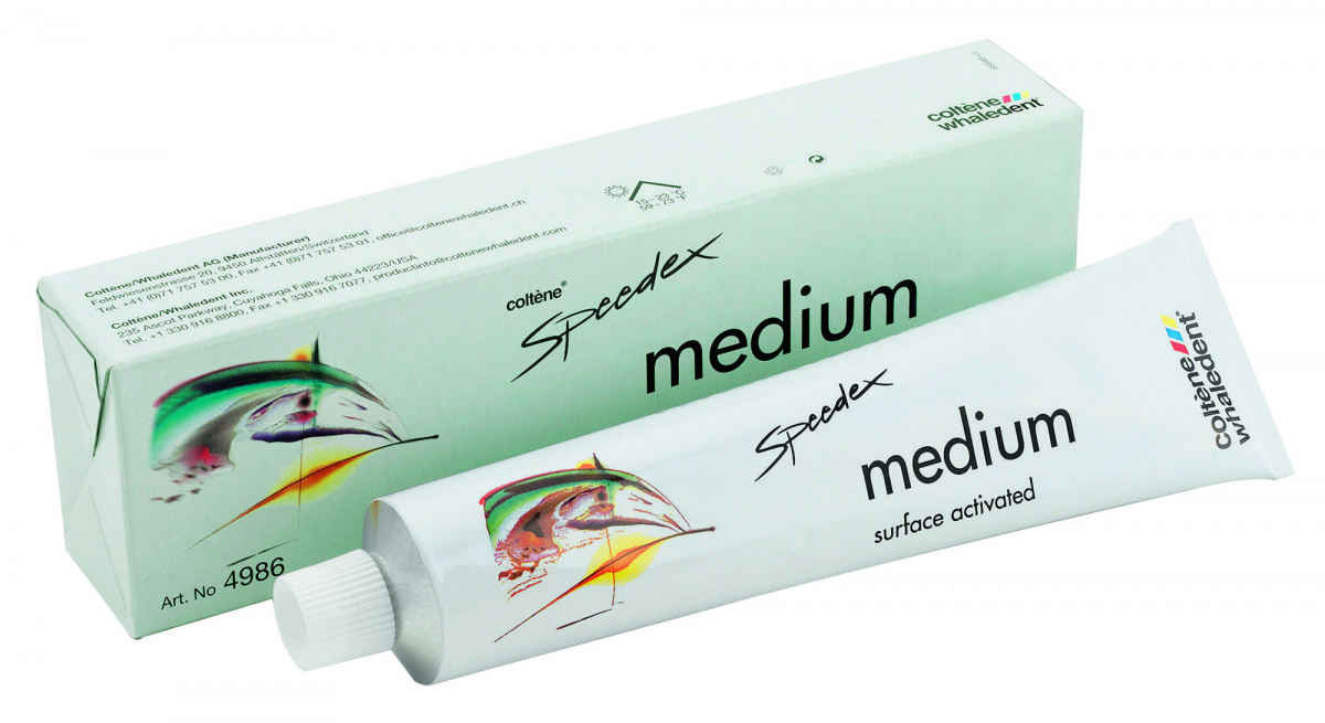 SPEEDEX Silicone tipo C (2ª impronta) indicato per impronta singola simultanea e impronta a due fasi "putty-wash". È caratterizzato da un'ottima stabilità dimensionale, e consente una riproduzione nei minimi dettagli. Tubo da 140 ml - Versione Medium