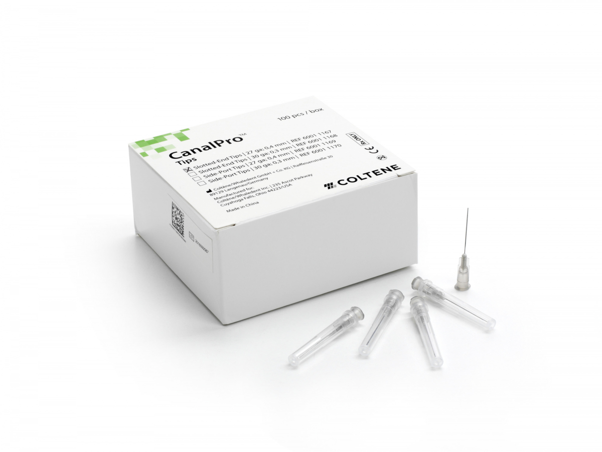 CANALPRO SLOTTED-END TIPS Aghi con estremità aperta e scanalatura laterale, ideali per l'irrigazione di canali, tasche e fistole. Confezione: 100 aghi 27G (Ø 0,4x25 mm) - Colore Grigio