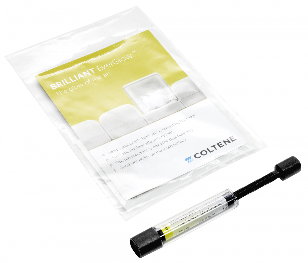 BRILLIANT EVERGLOW Composito sub-microibrido universale per restauri anteriori e posteriori, che offre un perfetto insieme di praticità d'uso, resistenza meccanica e all'abrasione, eccellenti proprietà mimetiche e brillantezza che dura nel tempo. Grazie alla sofisticata composizione dei suoi riempitivi Brilliant EverGlow si presenta, subito dopo l'applicazione dell'otturazione, come una superficie eccezionalmente liscia dalla lucentezza satinata. La lucidatura diventa pertanto minimale e in brevissimo tempo è possibile eseguire restauri altamente estetici, caratterizzati da una brillantezza che dura nel tempo. Brilliant EverGlow si integra armoniosamente nel tessuto dentale circostante e già con l'applicazione di un solo colore (single-shade) si possono realizzare restauri altamente estetici. La consistenza liscia e la stabilità dimensionale garantiscono un'agevole e pratica applicazione; grazie alla buona bagnabilità inoltre, offre un'adesione eccellente alle superfici dentarie trattate con adesivo senza app