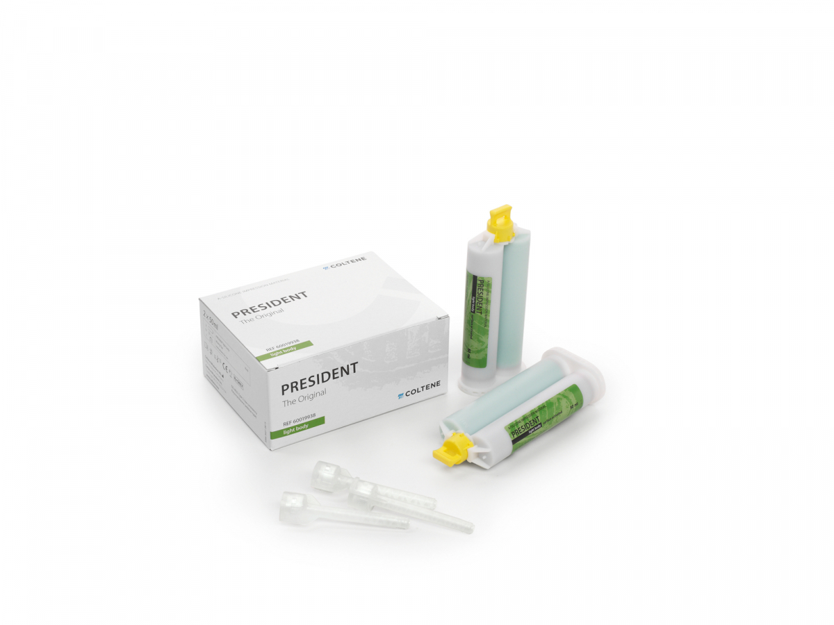 La nuova gamma di materiali wash PRESIDENT The Original offre, oltre a light body e regular body, una nuova consistenza: Xtra light body. Come già rivela il nome, Xtra light body è un materiale wash molto fluido in grado di rilevare anche i minimi dettagli dei margini, in quanto scorre anche nelle aree più strette senza colare dal dente.