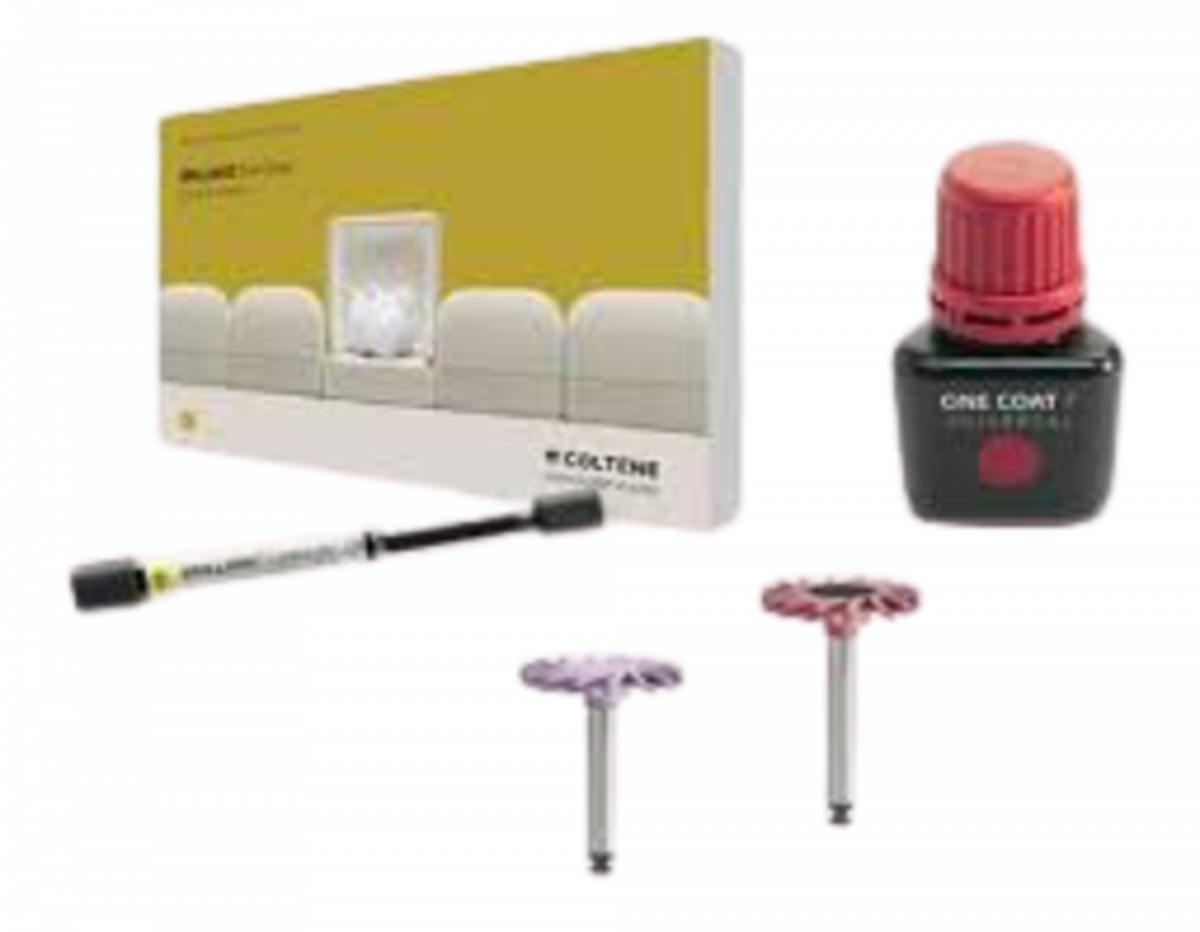 Il kit contiene: 3 siringhe di Brilliant Ever Glow da 3gr cad. (A1/B1;A2/B2; A3/D3), 1 adesivo One Coat7 Universal 5ml, 2 DiatechShapeGuards per composito (1 x prelucidatura + 1 x lucidatura finale).