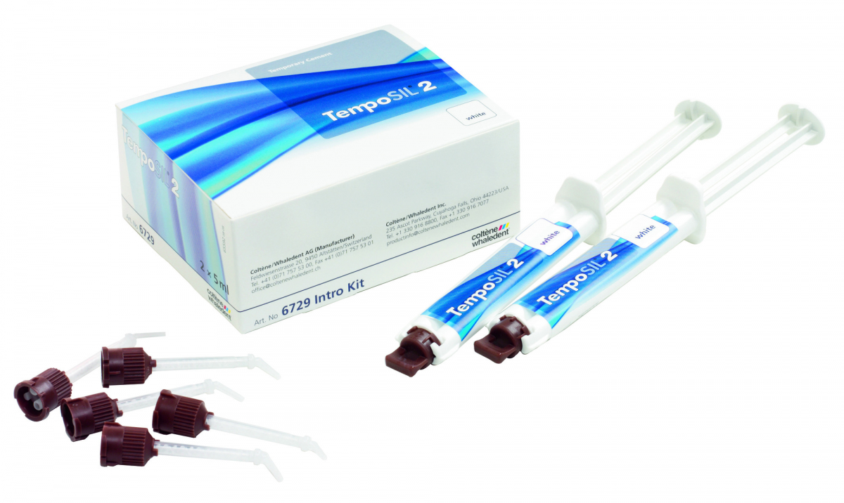 Cemento provvisorio a base di silicone per addizione (tipo A), radiopaco, con formula migliorata. Caratteristiche: - forte adesione dei restauri provvisori alla struttura dentale naturale, ai materiali per la ricostruzione del moncone e alle leghe metalliche, così come alle superfici in ossido di zirconio - integrità marginale superiore - agevole applicazione e rimozione, grazie all'ideale equilibrio elastico della sua formulazione - rapido tempo di indurimento Disponibile in 2 diverse tonalità, bianco e dentina, per le applicazioni estetiche. Kit Intro Bianco: 2 siringhe da 5 ml cad. + 15 punte di miscelazione