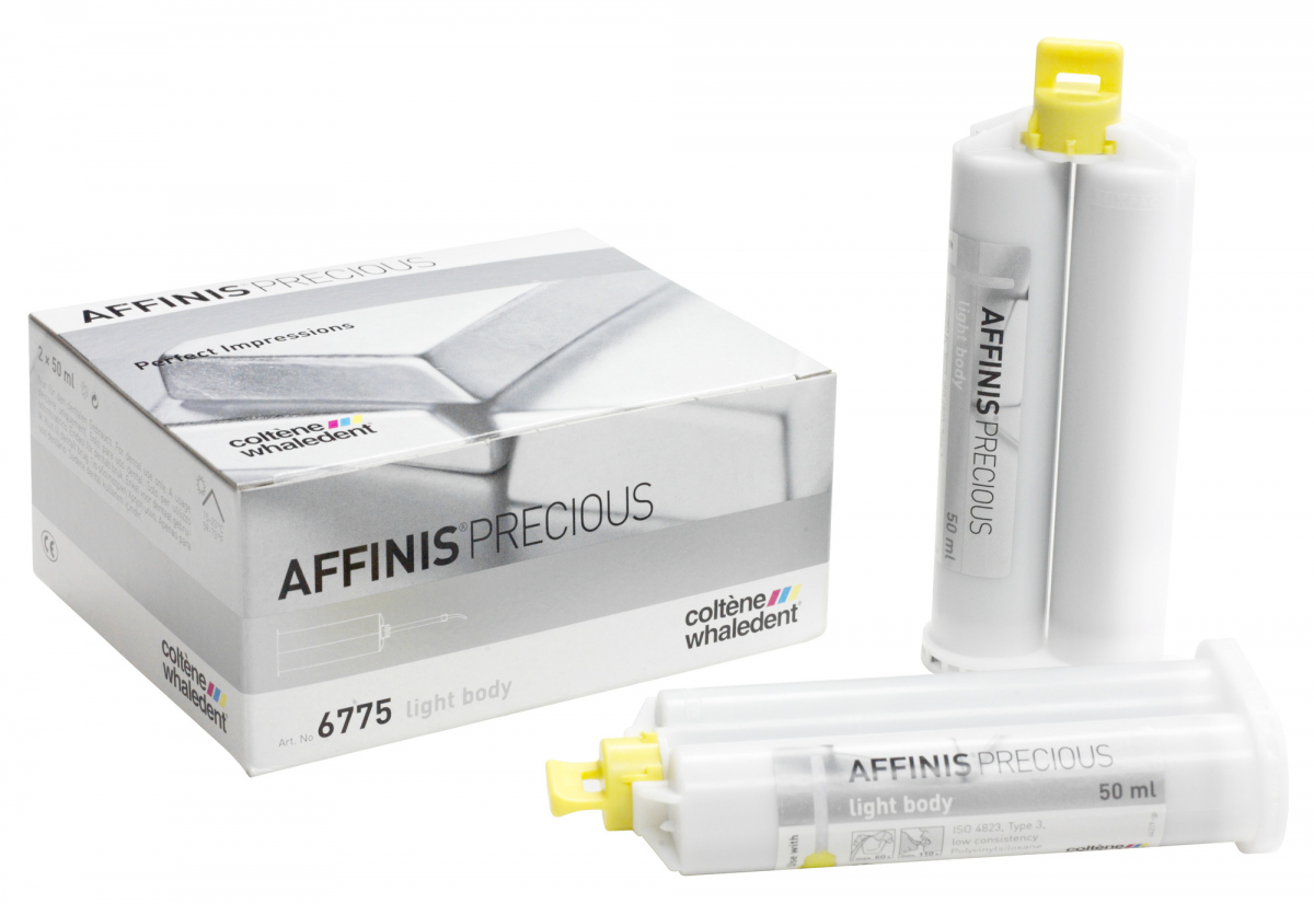 Polivinilsilossano dall'eccezionale fluidità, che consente di rilevare facilmente i dettagli superficiali più critici in ambiente umido: indicato per ribasature, tecnica putty-wash e per doppia miscelazione. La sua formula termo-sensibile permette di controllare il tempo di lavoro (variabile da 5 a 60 secondi) ed il tempo totale di indurimento, di soli 110 secondi. Inoltre è caratterizzato da leggibilità eccezionale: l'esclusiva pigmentazione oro e argento riduce drasticamente l'effetto di dispersione della luce, migliorando così la visibilità dei margini. Confezione: 2 cartucce da 50 ml cad. + 12 puntali