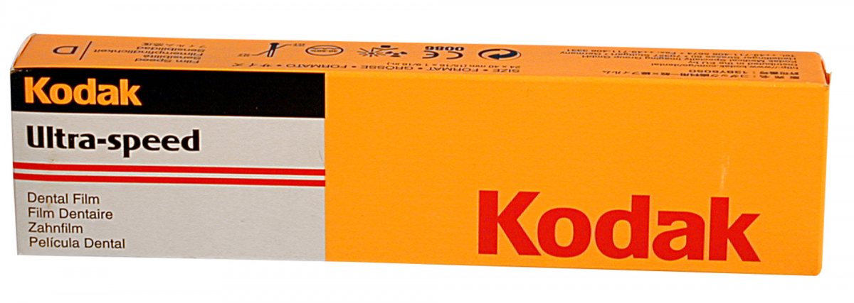 Pellicole radiografiche intraorali. Si tratta di pellicole doppie, che consentono di ottenere il duplicato immediato dell'esame radiografico. Confezione da 100 pellicole doppie 2,4 x 4 cm