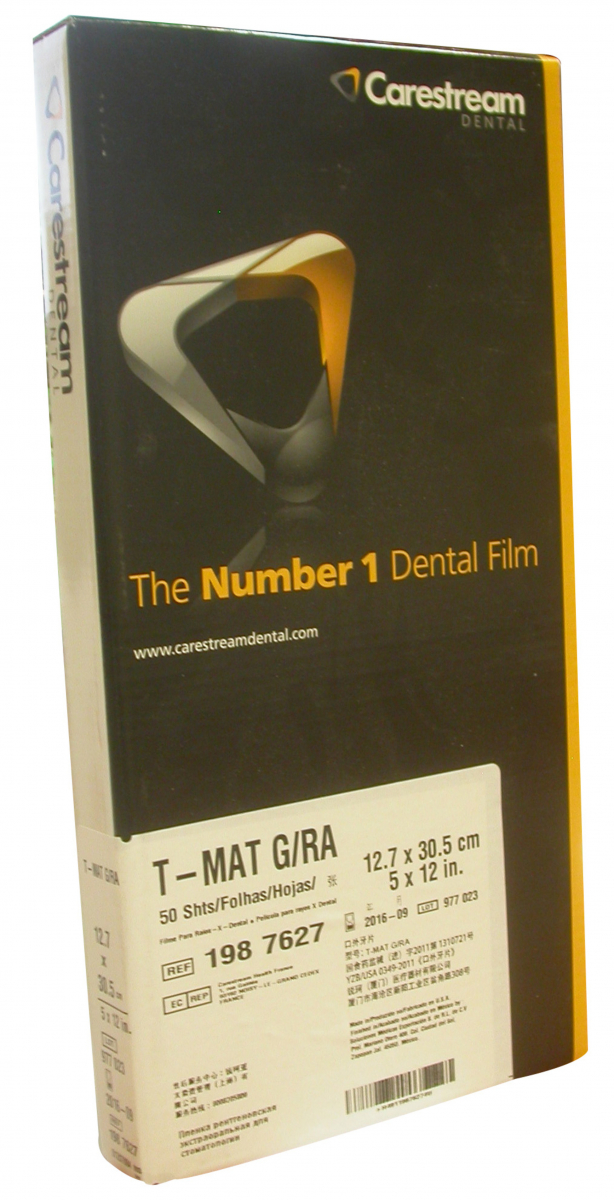 T-MAT G - Kodak Pellicole radiografiche extraorali per schermi di rinforzo verdi emittenti. Garantiscono un'alta definizione dei dettagli. Confezione da 50 pellicole Dimensioni: 12,7x30,5 cm
